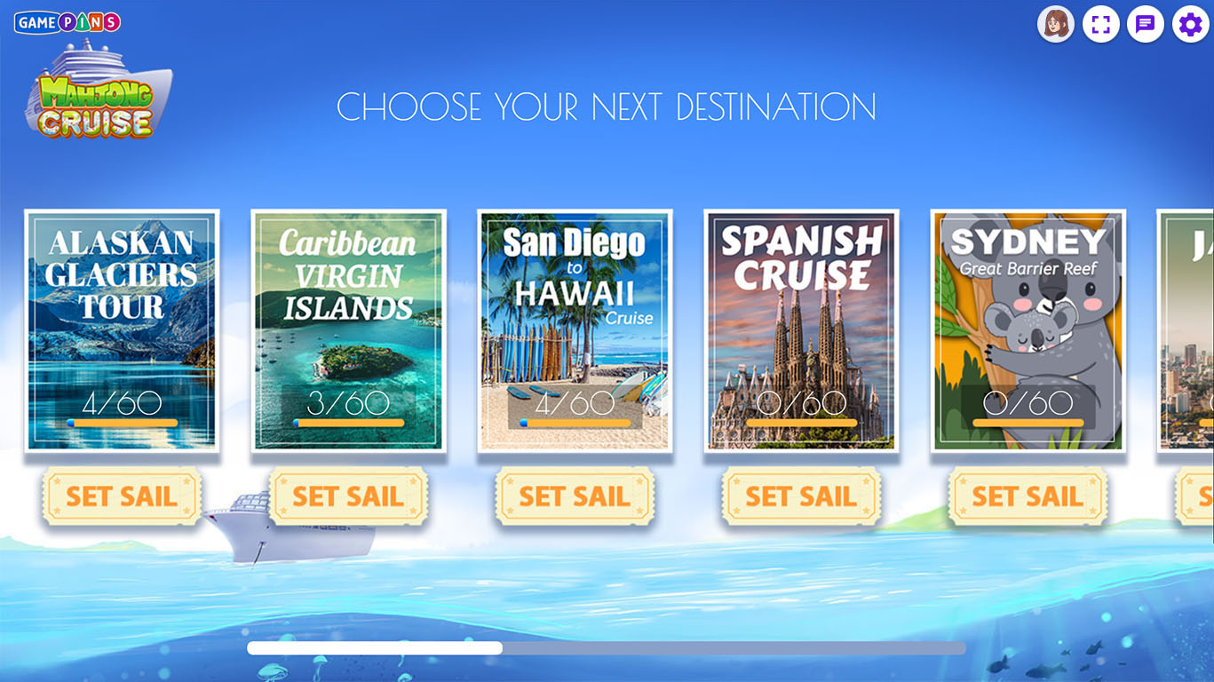 Pack your bags and head out on a cruise all around the globe to manifest your Mahjong mastery!